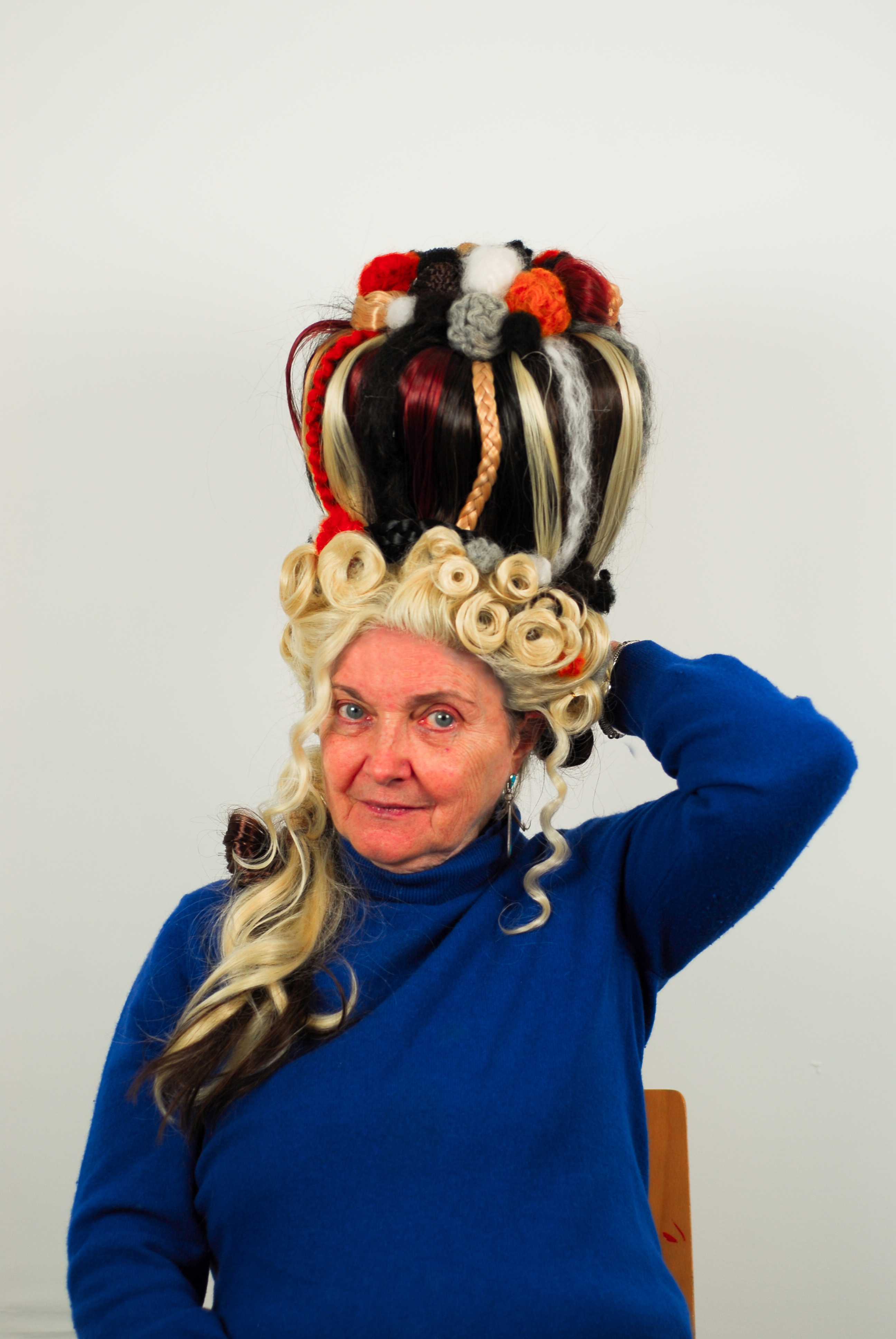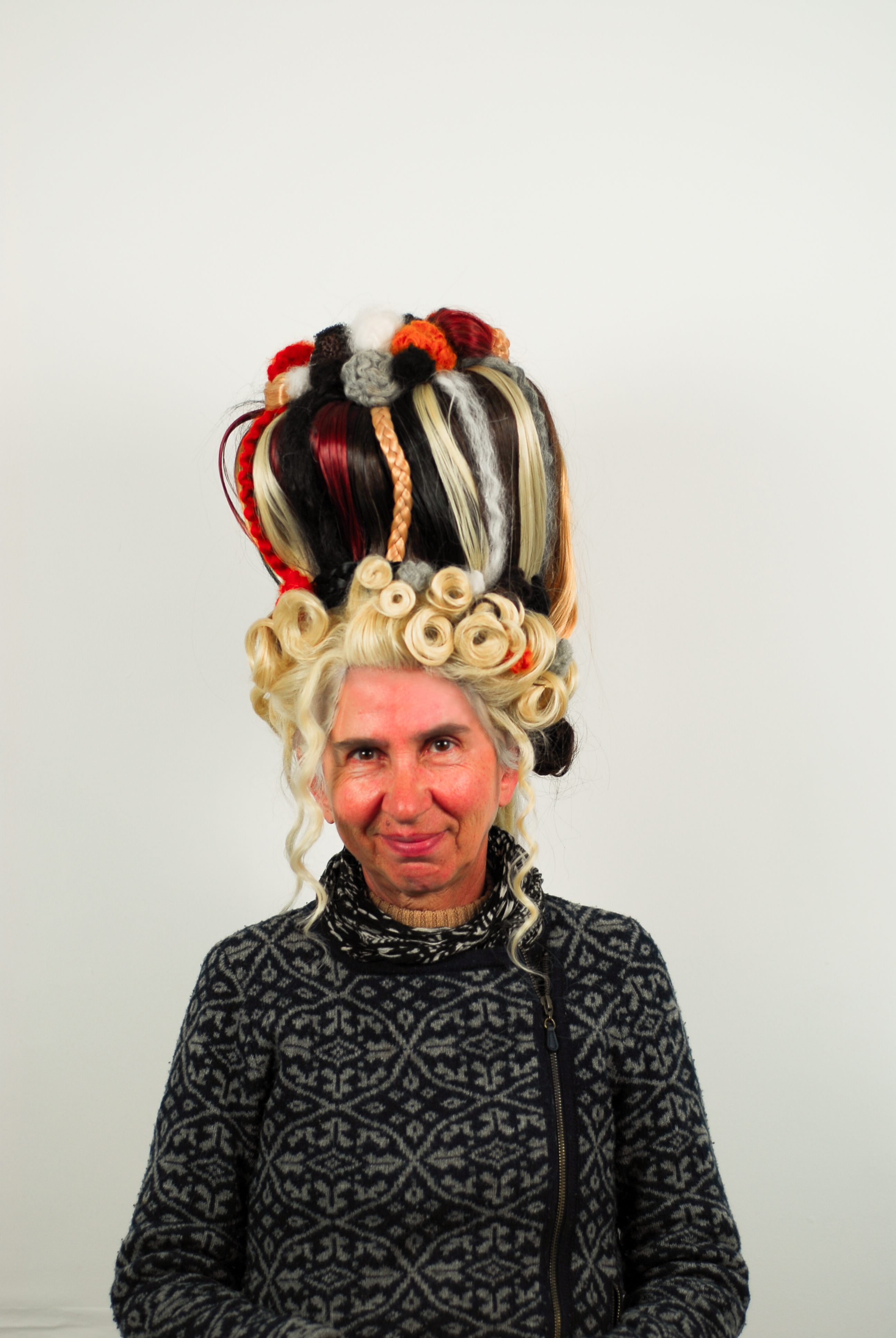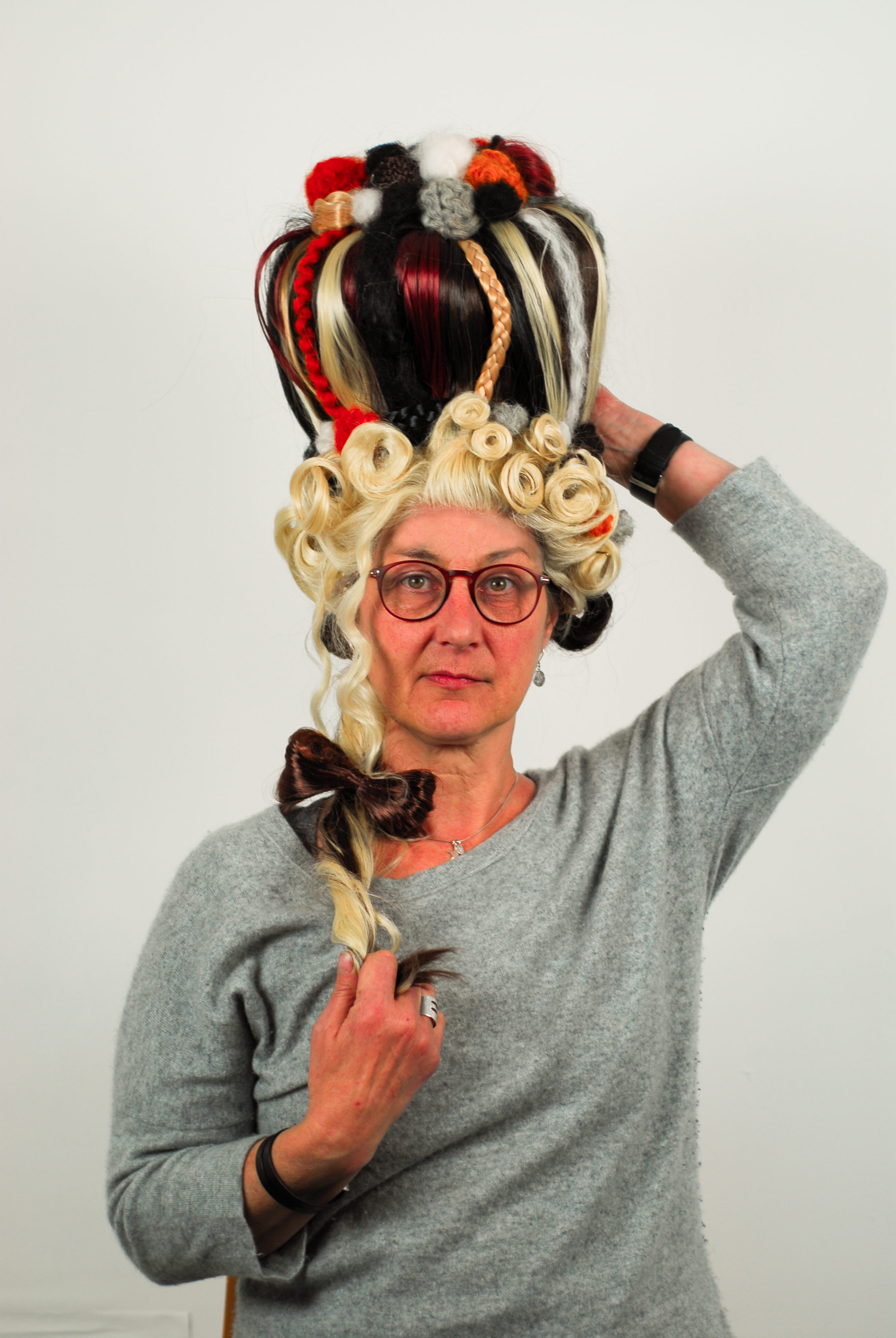 The preparation of hair was a pivotal part of the toilette or levee in the 18th-century, with certain styles dictating a place in society. By styling a wig that references the 18th-century decadence of this period, I could then explore how this defunct ritual, which dictated a preferred hair type, style, texture and colour, can throw hair into a new light.
