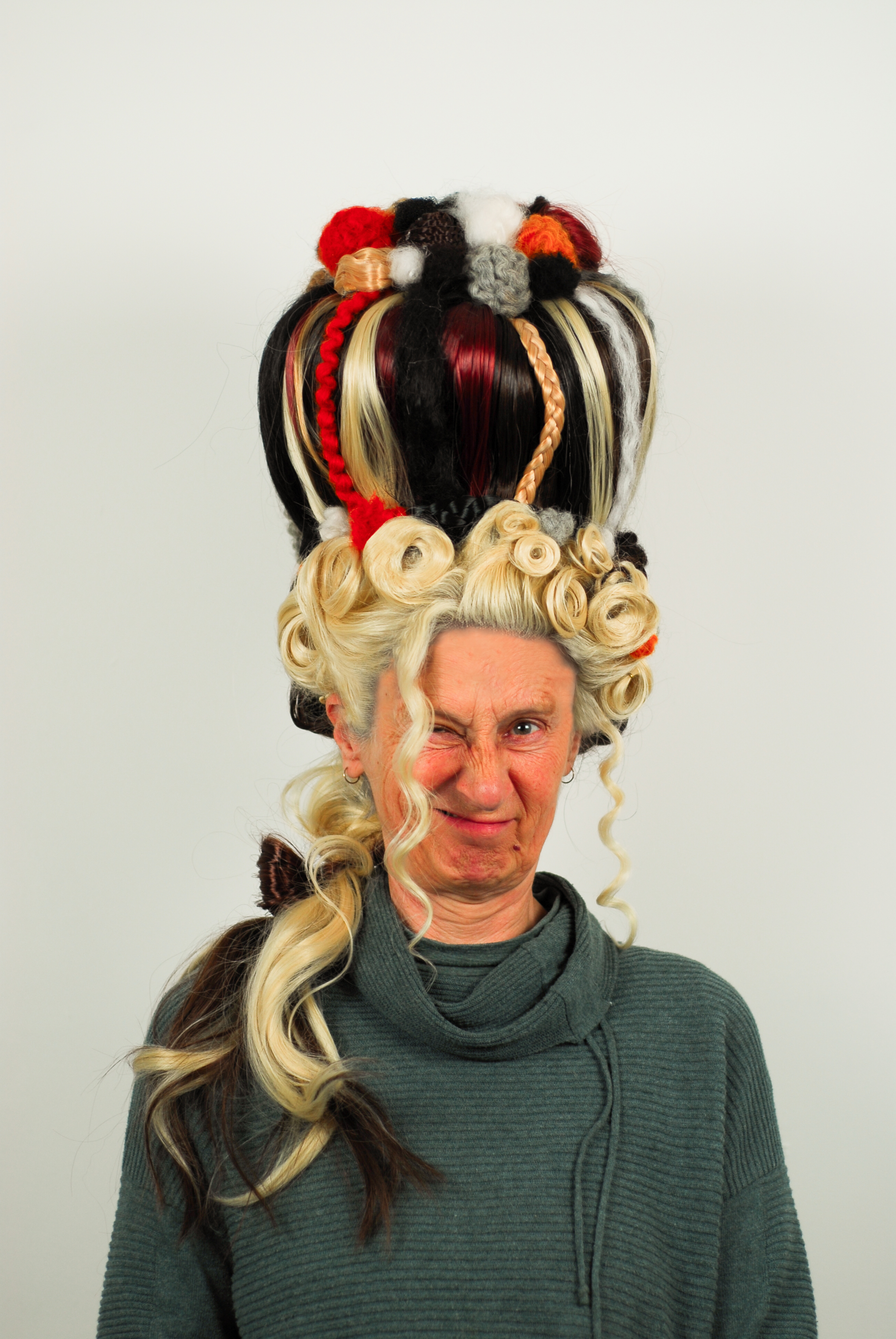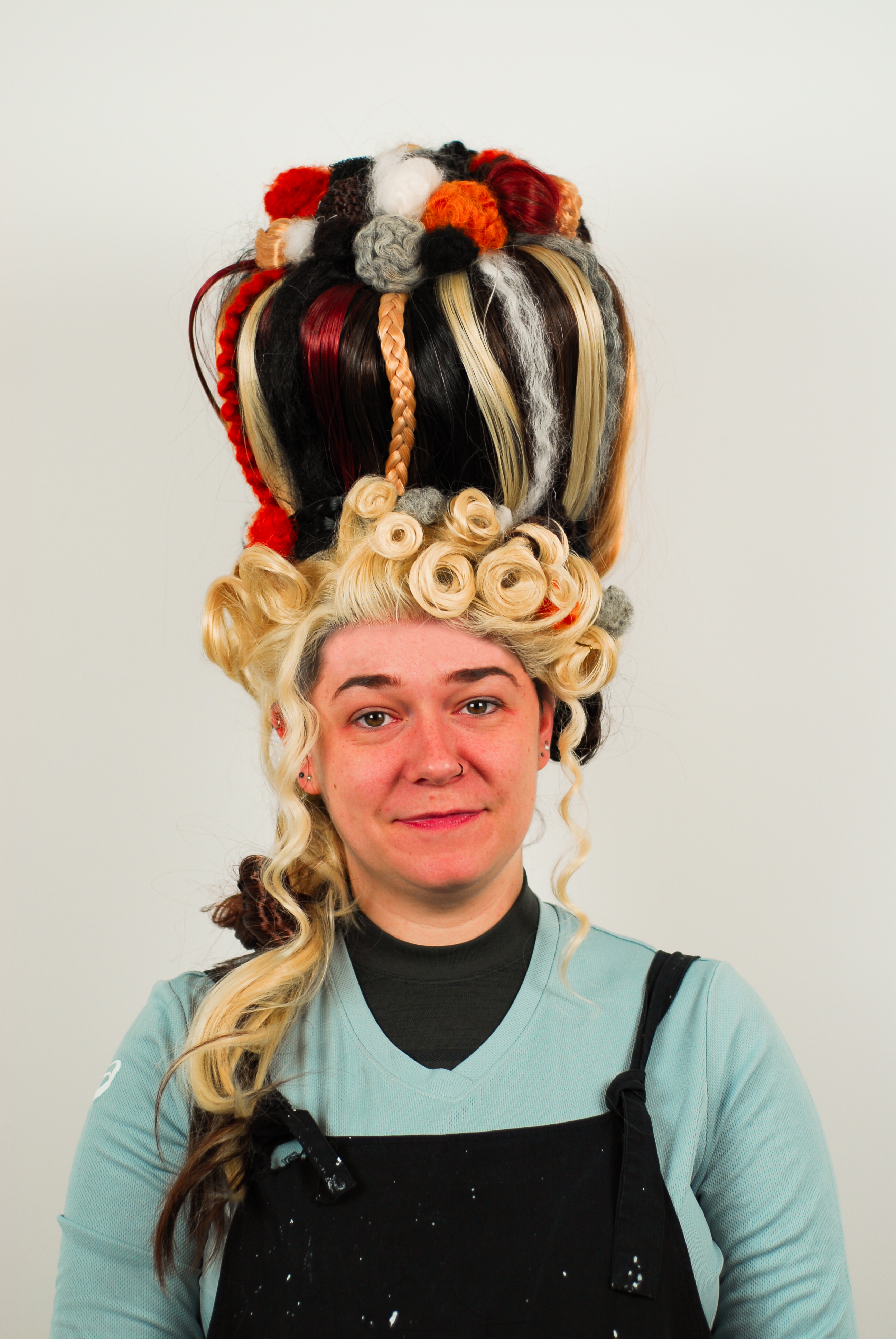 By building more abstract shapes into the wig, as well as a range of colours, textures and styles, I want to challenge our way of looking at our hair. I aim to invite everyone into this modern community, by creating a wearable sculpture that’s a parody of an elitist part of our history.